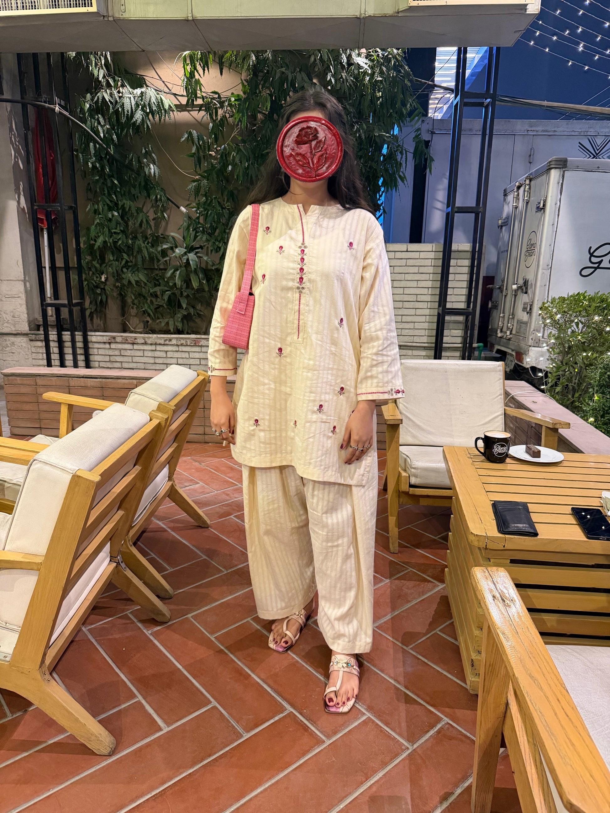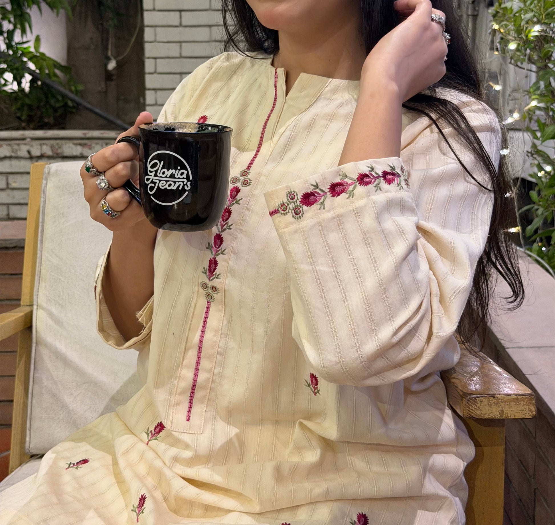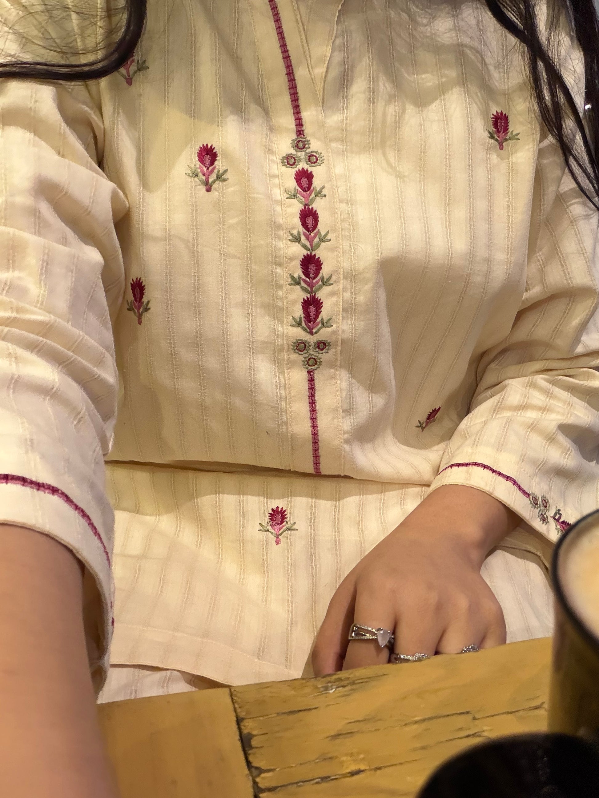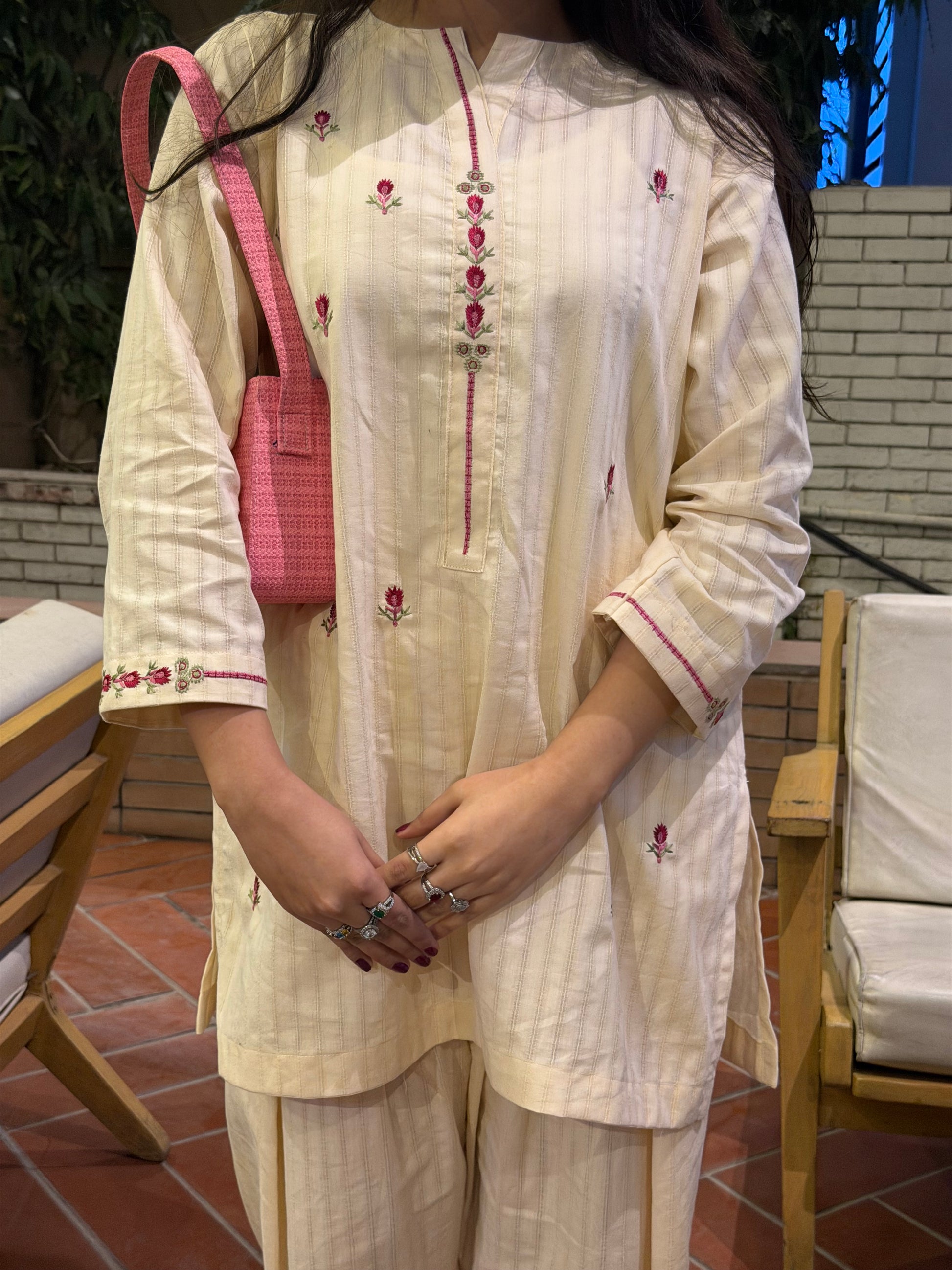 Color: Ivory with Pink Embroidery all over